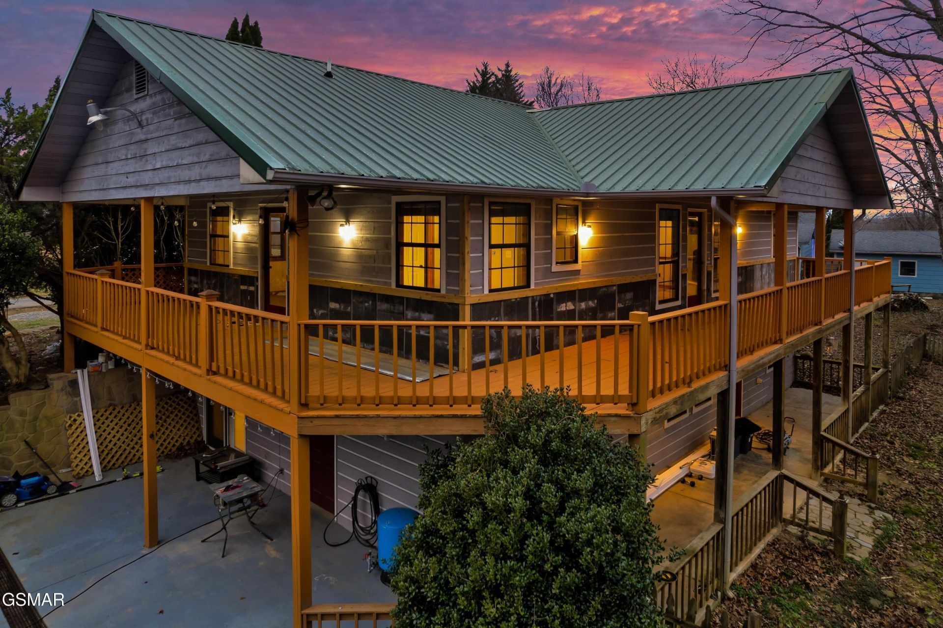 STELLAR LOCATION with AMAZING VIEWS at this 2BR cabin with 3 BONUS ROOMS sitting at the base of Cove Mountain and an incredibly rare INGROUND SALTWATER POOL!!! $25,000 furniture credit available with acceptable offer! The cabin's unique floorplan presents multiple options for new owners: - Rent the entire cabin with 2 bedrooms & 3 bonus rooms as an overnight rental. - CONVERT INTO A DUPLEX where the new owner lives in one unit to potentially qualify for a LOWER mortgage rate and rent out the 2nd unit as an INCOME PRODUCING PROPERTY. Each floor has it's own washer/dryer hookup for an easier than normal conversion. - Use as a primary residence where one level is used as a MOTHER IN LAW SUITE or multigenerational home. - Use as a primary residence, as the sellers have done, for the last 10 years. Fun fact - sellers did not put a lock on their front door even though they lived here for 10 years! The main floor features the primary kitchen and family room with 2 bedrooms and a spacious deck looking down into the outdoor saltwater pool. The downstairs features a 2nd large family room, 2nd kitchen and 3 additional bonus/flex rooms. Each family room has its own fireplace and both levels have expansive walkout deck/patio space and downstairs area provides access to the inground saltwater pool and the potential party pad with a ton of extra outdoor space for the owners to customize. Lots of high dollar upgrades in recent years: new HVAC in 2024, new floors in 2025, new paint in 2025, multiple new kitchen appliances in 2025, etc., etc. Some drone photographs used in listing photos.